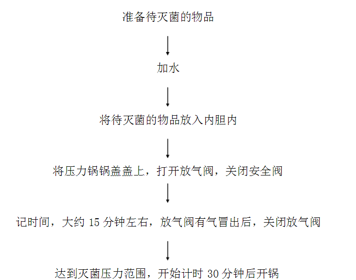 7. 放于加熱器兩側進行烘干,不可直接放于烘干器上覆蓋,以免發生意外。 8. 打開安全閥及放氣閥,待氣放盡后,擰開鍋蓋,取出無菌物品。 9. 無菌物品烘干后及時放入無菌柜內保存。